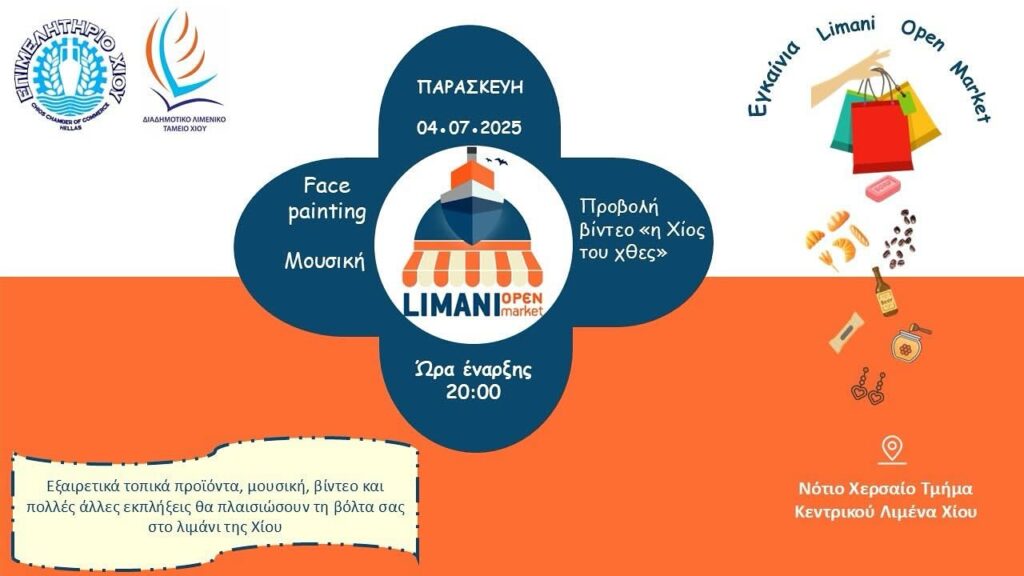 Από σήμερα έως τις 13 Ιουλίου θα βρισκόμαστε στο Limani Open Market, στο περίπτερο Νο3 στο Νότιο τμήμα του Κεντρικού Λιμένα Χίου.